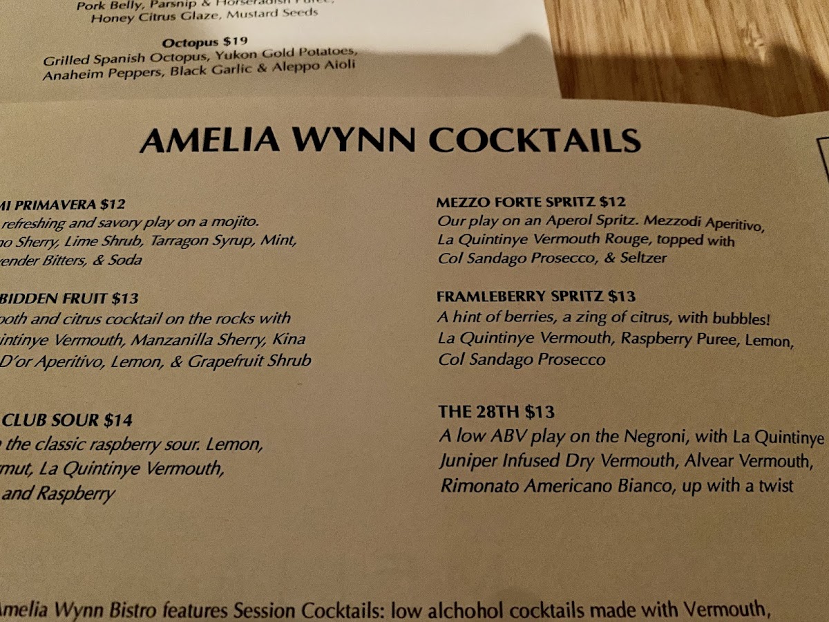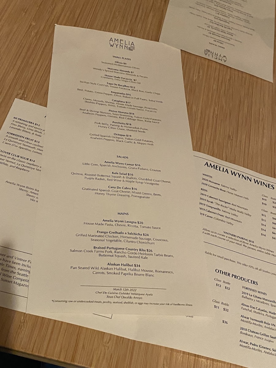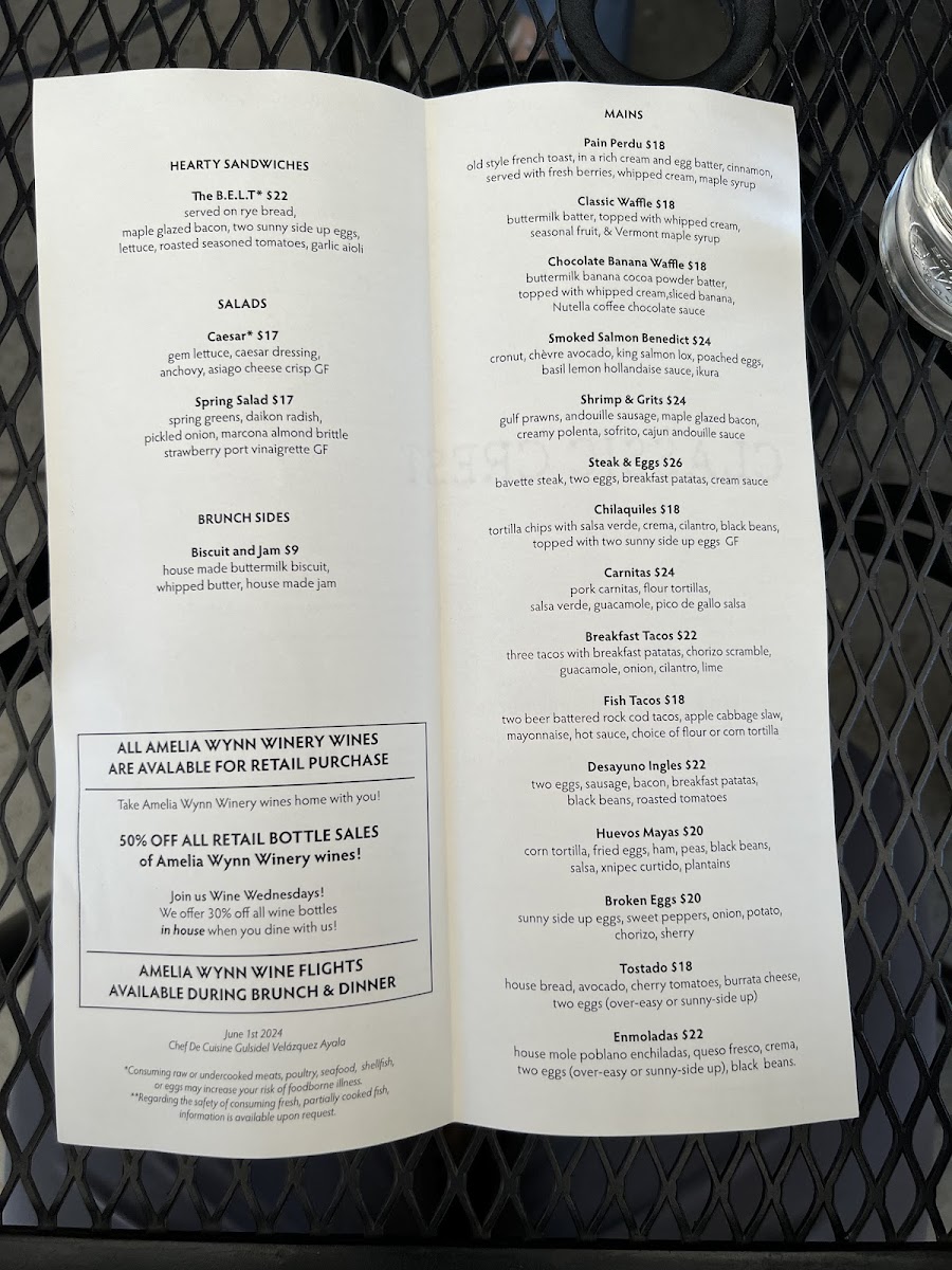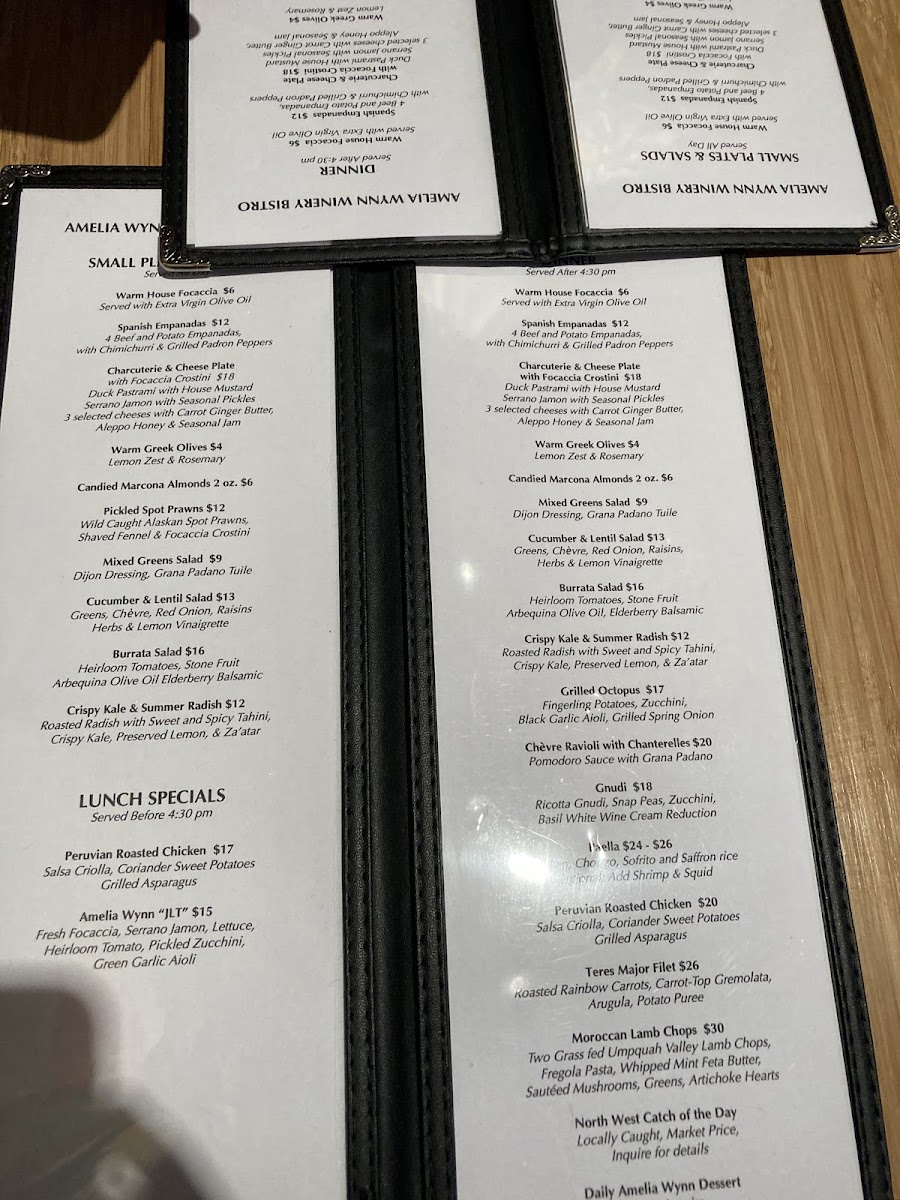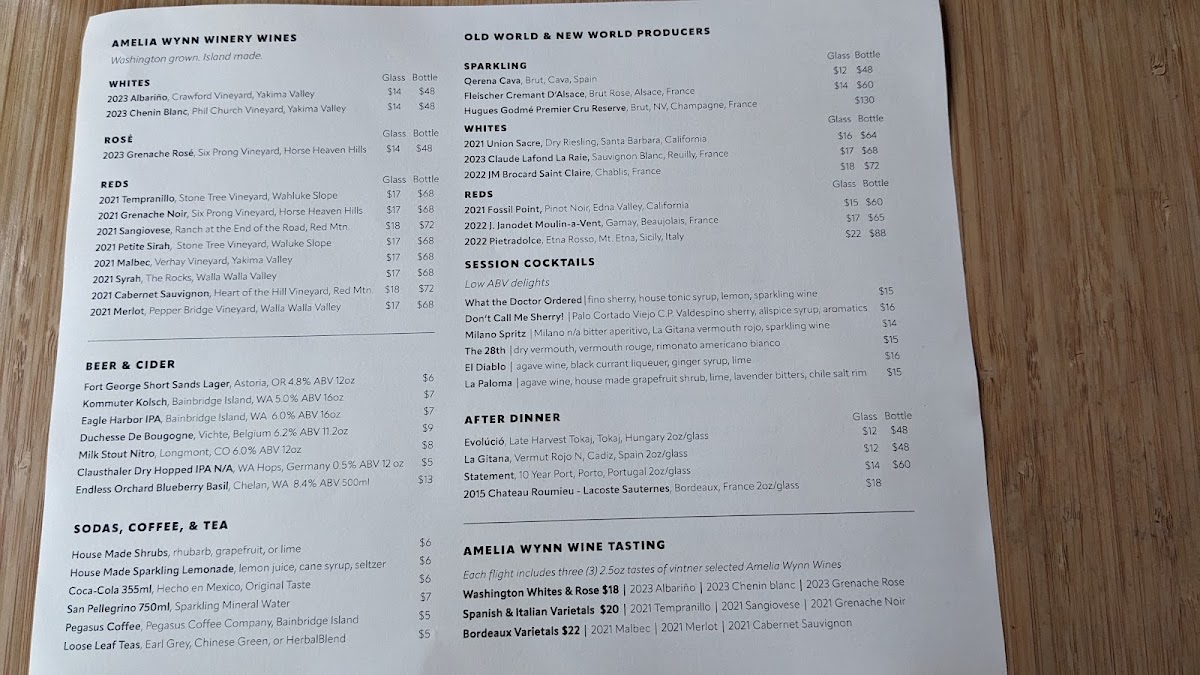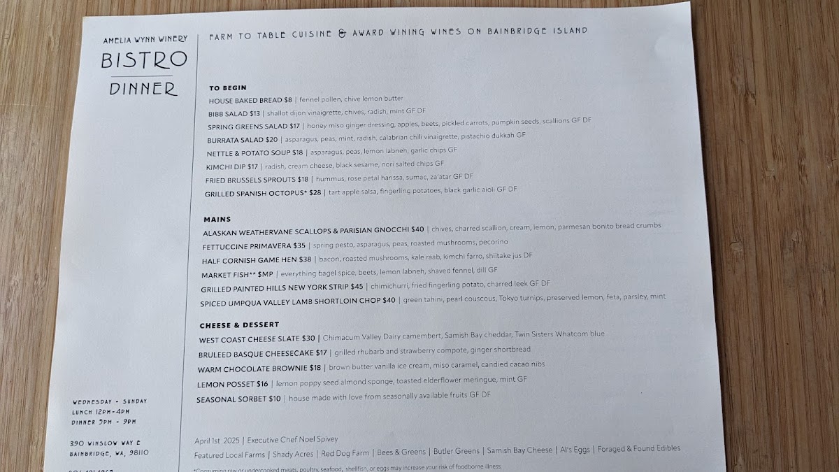 The menu at Amelia Wynn Winery Bistro offers a delightful selection of dishes that cater to a variety of tastes, with a focus on fresh, seasonal ingredients. For dinner, which is served from 5 PM to 8:30 PM, guests can enjoy the House Baked Bread, a perfect start to any meal, followed by refreshing options like the Winter White Chicory Salad and the creamy Burrata Salad. For a heartier choice, the Dungeness Crab Dip and Celeriac & Apple Soup stand out as flavorful, comforting dishes. Lunch, served from 12 PM to 2:45 PM, features some of these favorites, including the House Baked Bread, White Chicory Salad, and Burrata Salad, alongside the Dungeness Crab Dip. The addition of the Grilled Spanish Octopus offers a more adventurous option for seafood lovers. The menu’s emphasis on fresh, high-quality ingredients and its seasonal offerings make it a great spot for both casual lunches and more elegant dinners.